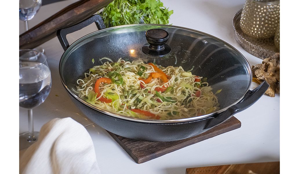 Den stora diametern gör den perfekt för wokning, stekning, grytor, nudelrätter och matlagning för många.