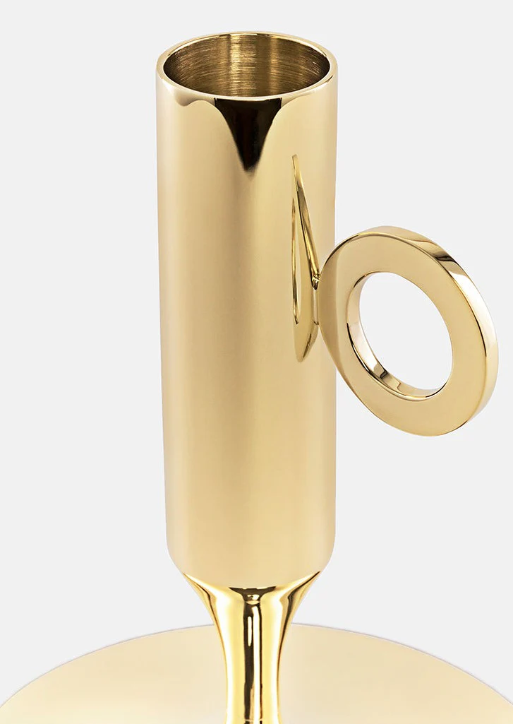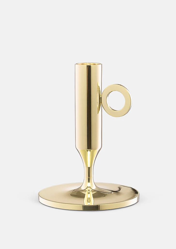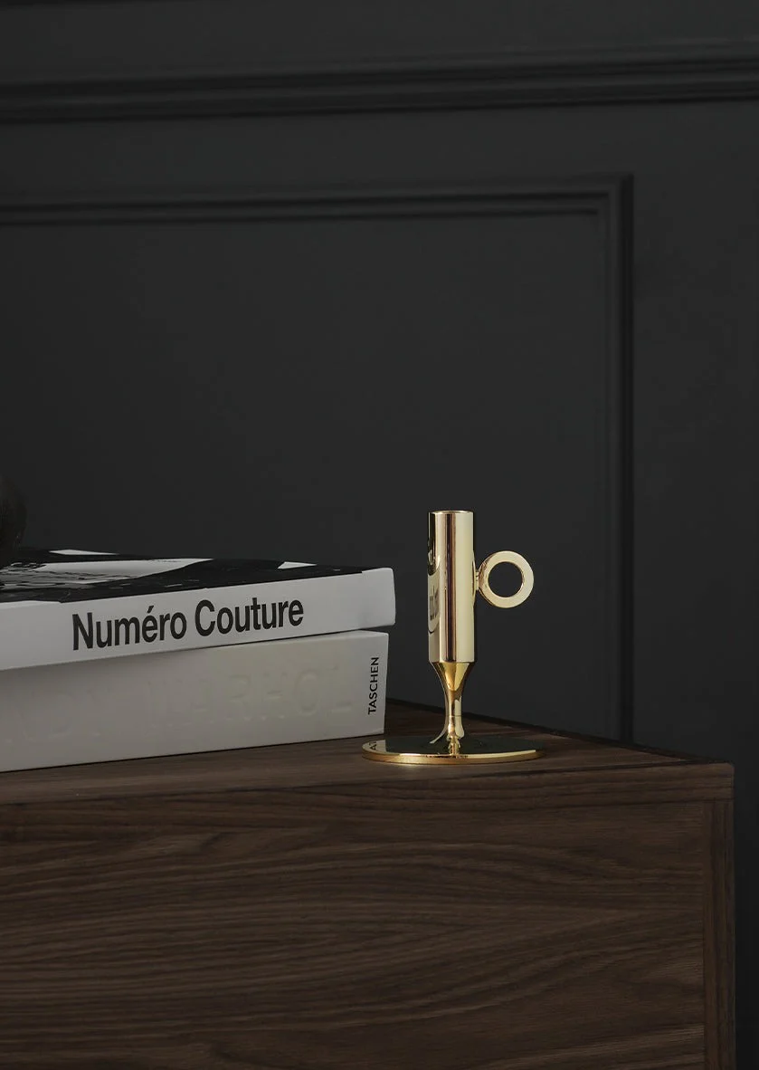 Ljusstaken är tillverkad i massiv mässing, ett exklusivt material som ger både tyngd och hållbarhet. Den rena geometriska formen skapar ett samtida uttryck som passar i såväl minimalistiska som mer klassiska inredningsmiljöer.