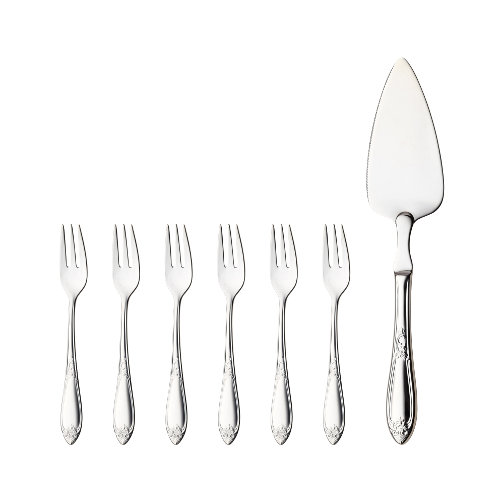 Nina tårtset från Hardanger Bestikk – 6 gafflar och en elegant spade som lyfter varje kalas. Stilfull design med praktiska detaljer.