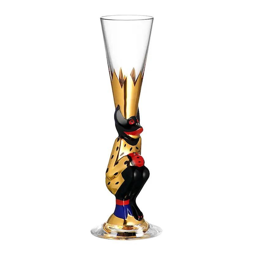Nobel snapsglas 4 cl från Orrefors i kristall med handmålat 21K guld. Formgivet av Gunnar Cyrén 1991 – en färgstark samlarserie.