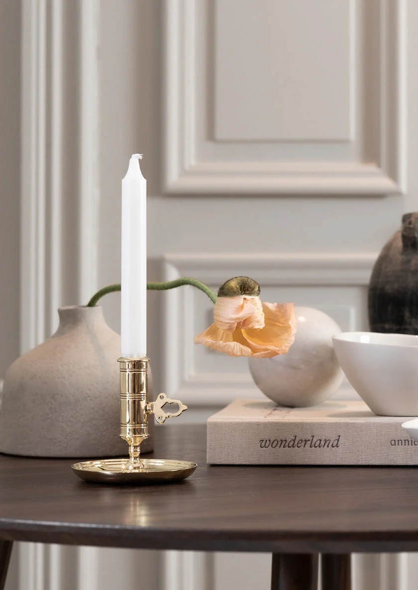 Skultuna Office Kontorsljusstake 11 cm – Ikonisk design i silverpläterad mässing En historisk designklassiker med tidlös elegans. Skultunas Office-ljusstake är inte bara en ljuskälla – det är ett stycke svensk designhistoria. Denna eleganta ljusstake har varit i oavbruten produktion sedan 1600-talet, då Skultuna Messingsbruk grundades av Karl IX. Med sin rena form, solida tyngd och diskreta lyx har den blivit ett kännetecken för både klassisk och modern inredning. Tillverkad i silverpläterad mässing, kombinerar den traditionellt hantverk med en stilren, skandinavisk estetik. Ljusstaken är lika vacker ensam på ett skrivbord som i par på ett dukat middagsbord – perfekt som present till någon du tycker om, eller som en tidlös detalj i ditt eget hem. En ikonisk ljusstake som förenar svensk designarv med modern känsla – lika vacker i dag som för 400 år sedan.