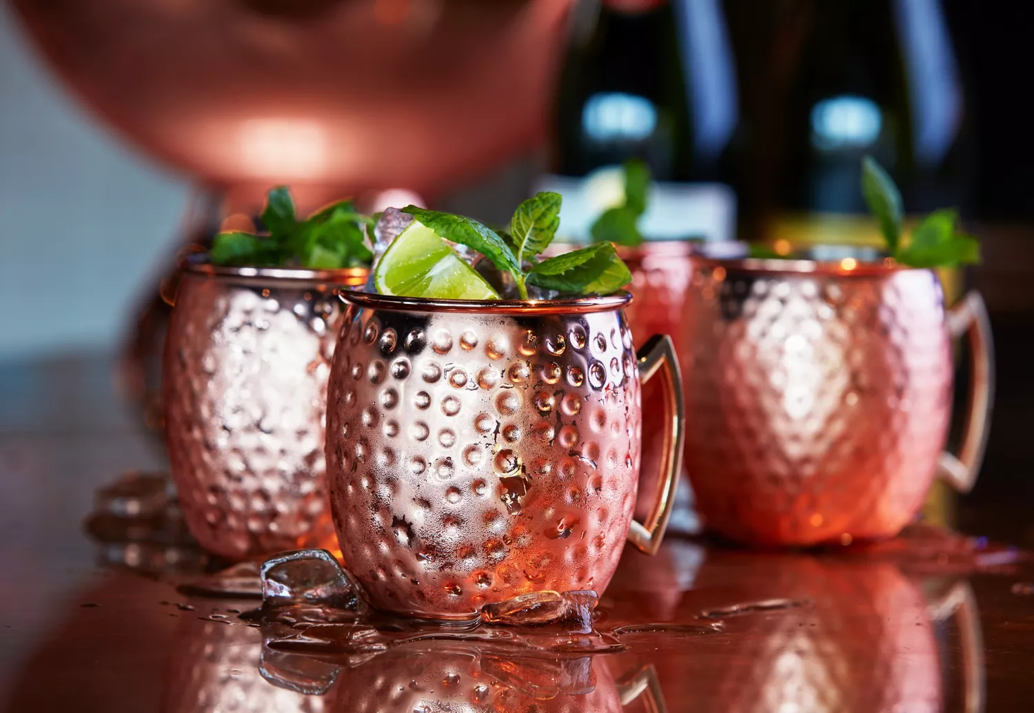 Rustik kopp i hamrad koppar – perfekt för kalla drinkar med is och sommarens smak.
