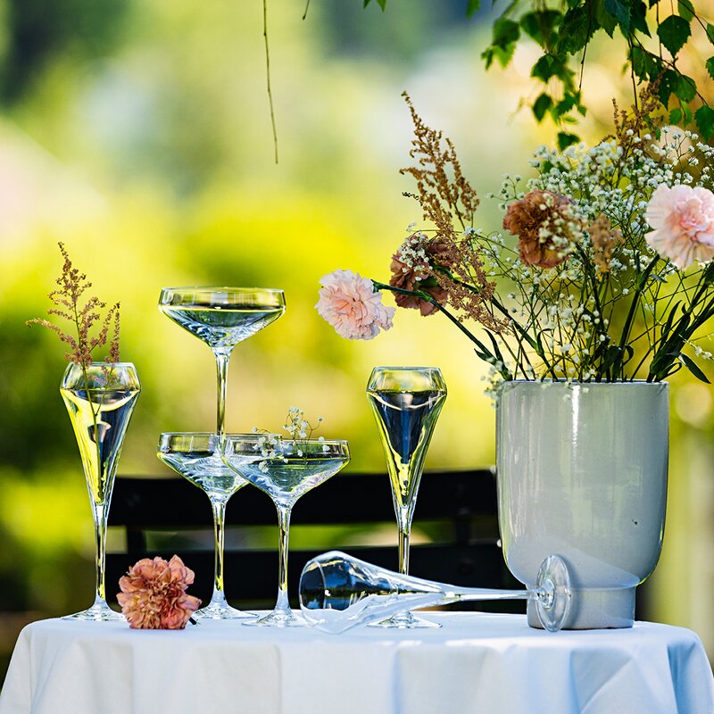 Glasens generösa kupa gör dem perfekta för champagne, prosecco och andra mousserande viner, men de passar även utmärkt för klassiska cocktails eller desserter. Den öppna formen framhäver dryckens aromer samtidigt som glaset ger en stilfull presentation på det dukade bordet.