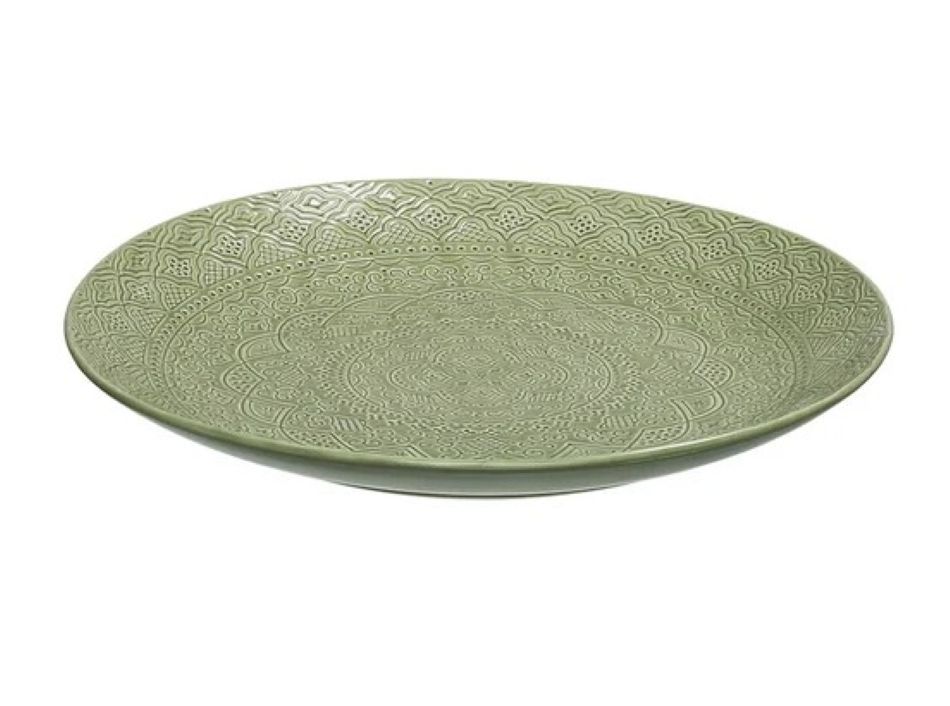 Robust uppläggningsfat i stengods med vackert reliefmönster. Perfekt för frukt, sallad eller som dekorativ detalj på bordet.