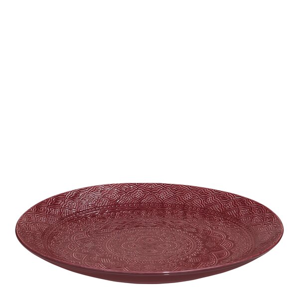 Stort fruktfat med vinröd glasyr – Ø35 cm, dekorativt och funktionellt.