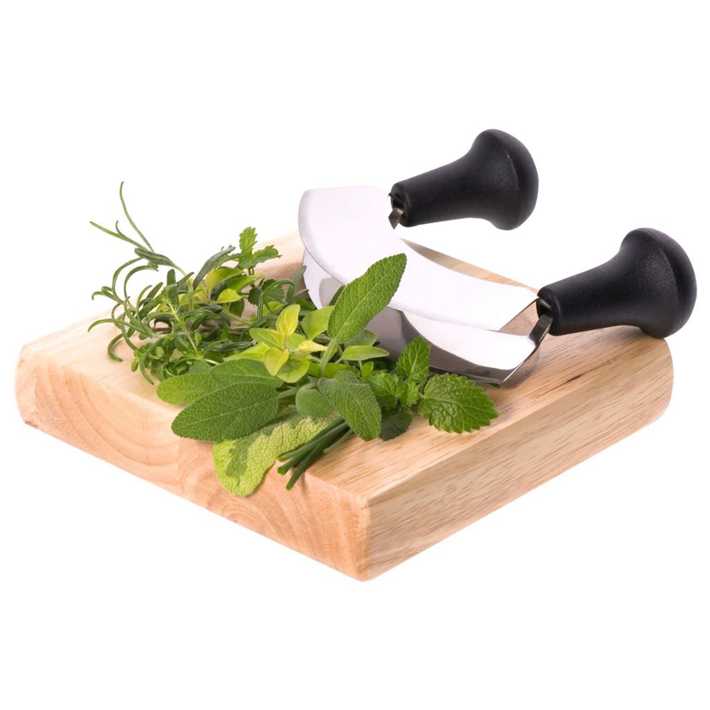 Denna praktiska vagga-kniv med två blad är ett idealiskt redskap för att snabbt och enkelt hacka och finfördela färska örter, lök, vitlök, choklad med mera. Den stora fördelen är att bladen skär och hackar varsamt istället för att krossa ingredienserna. De två bladen i rostfritt stål rör sig smidigt och snabbt genom örterna, medan de två stora, halkfria handtagen ger ett utmärkt grepp för effektivt arbete. Resultatet blir nyskurna örter med full smak.