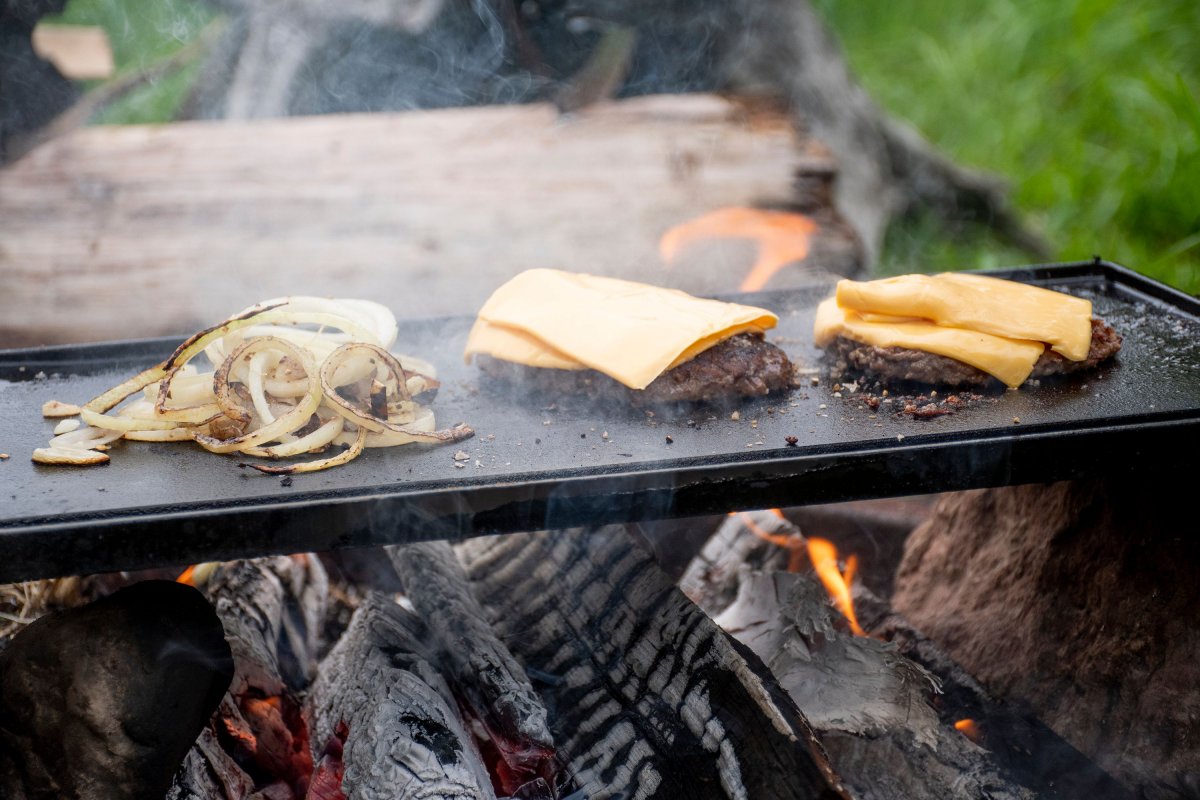 Den andra sidan är flat och är perfekt för att göra till exempel smashburgers eller steka mjukare råvaror som annars lätt fastnar och trillar ner genom grillgallret. Fiskfiléer, svamp, grönsaker och dylikt. Stekbordet är också utmärkt för riktigt stora schnitzlar.