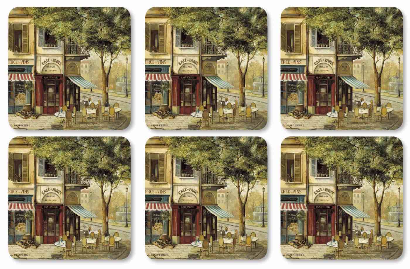 Glasunderlägg Parisian Scenes 6-pack – dröm dig bort till Paris med vacker design. Slitstarka underlägg med korkbas och skyddande yta.