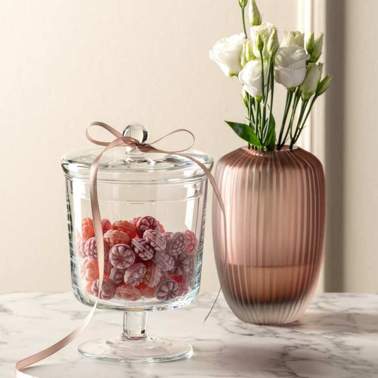 Glasburken är perfekt att förvara exempelvis godis och kakor i. Varje glasburk är handgjord och unik varav små skillnader kan förekomma. En del av Leonardo serien.