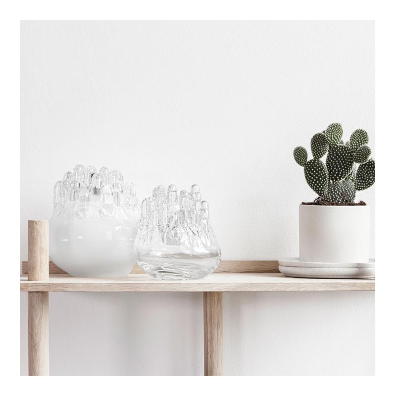 Med sin magnifika storlek fungerar Polar lika väl som ett fristående konstobjekt som en stämningsfull ljushållare. Placera den i vardagsrummet, på ett sidobord eller direkt på golvet för ett kraftfullt och elegant uttryck. När den används med ljus skapar den ett mjukt, inbjudande sken som förstärker känslan av lugn och rymd.