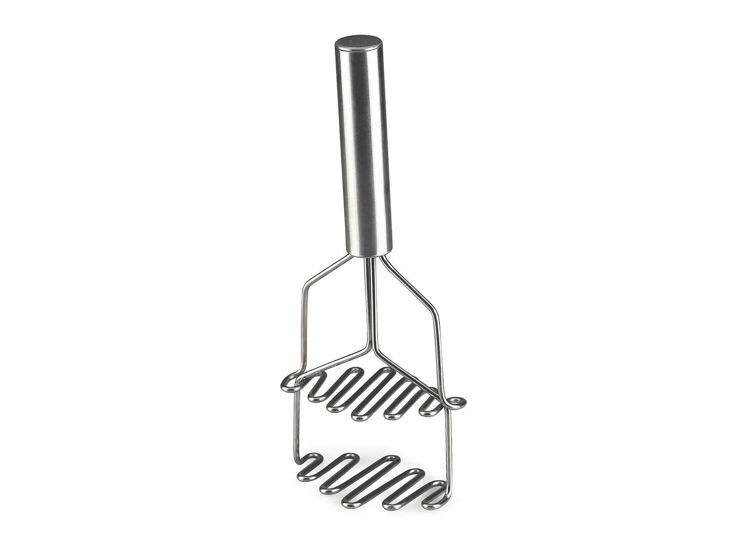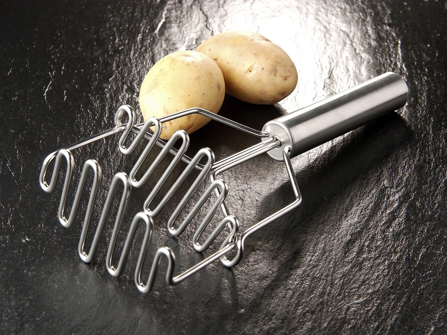 En fjädrande potatisstöt av rostfritt stål från funktion. Effektiv, fjädrad potatisstöt.