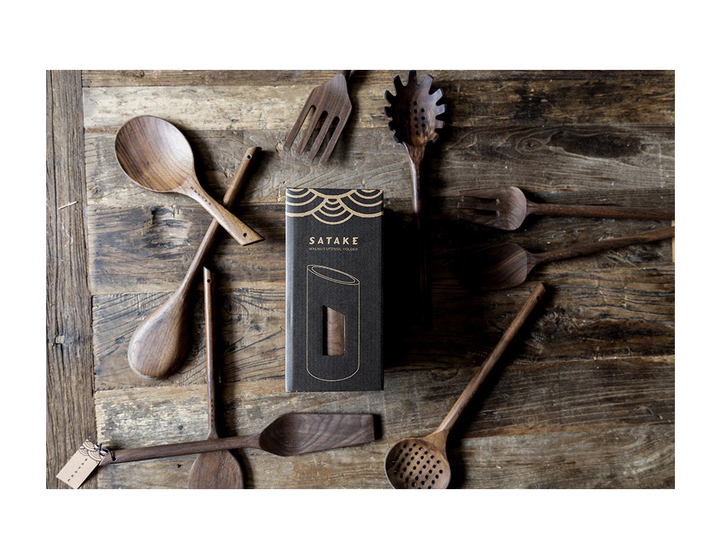 Den naturliga valnöten ger ett varmt och exklusivt uttryck som lyfter kökets helhetskänsla, samtidigt som stället håller ordning på slevar, spatlar och andra redskap. Ett stilrent komplement till Satakes valnötsserie.
