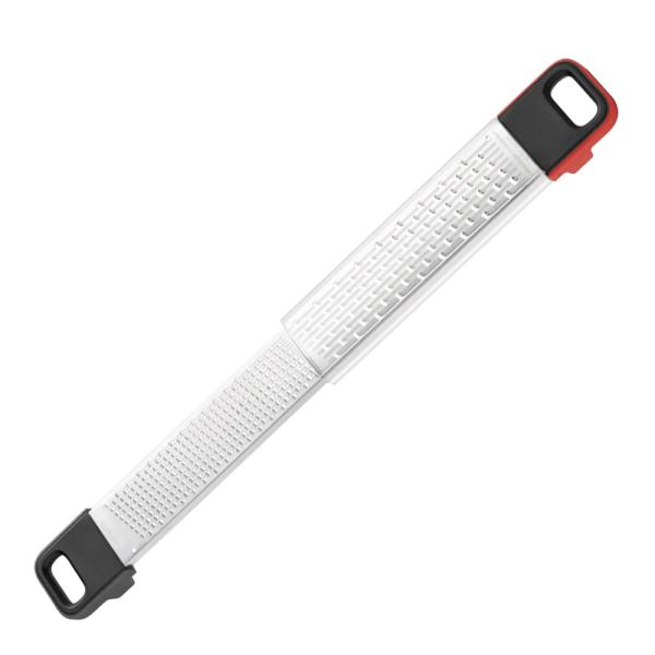 Två sidor - Den fina sidan är perfekt för uppgifter som att zesta citrus, riva choklad eller lägga till en touch av kanel eller muskotnöt. Samtidigt utmärker sig den grövre sedan som ett perfekt rivjärn/zestjärn för grönsaker som till exempel gurka eller morot och är så klart även perfekt till pamresan och mozarella för att nämna några exempel.