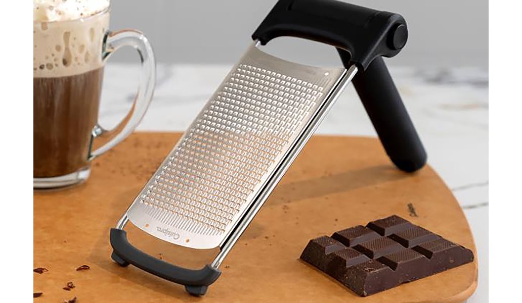Smart vikbart rivjärn från cuisipro 33 cm, sparar plats i lådan.Rivjärnet är genomtänkt designat med ett ergonomiskt handtag som har en halkfri finish