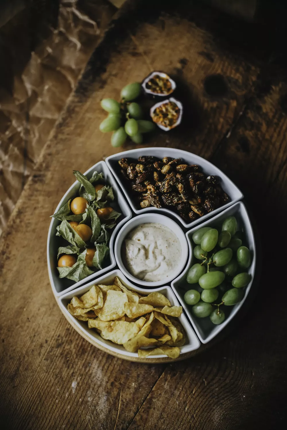 Dorre Samara Skålset 6 delar med 28 cm snurrande FSC-certifierad bambubricka – elegant och praktisk för smakfull servering.