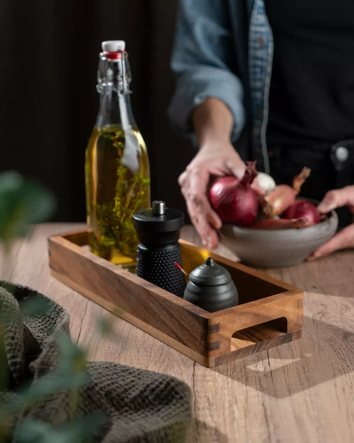 Tillverkad i slitstarkt akaciaträ