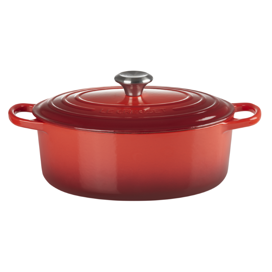 Le Creuset oval gryta 27 cm, 4,1 L. Håller värmen länge. För alla värmekällor. Tål ugn, grill, diskmaskin. Finns i flera färger. Livstidsgaranti.