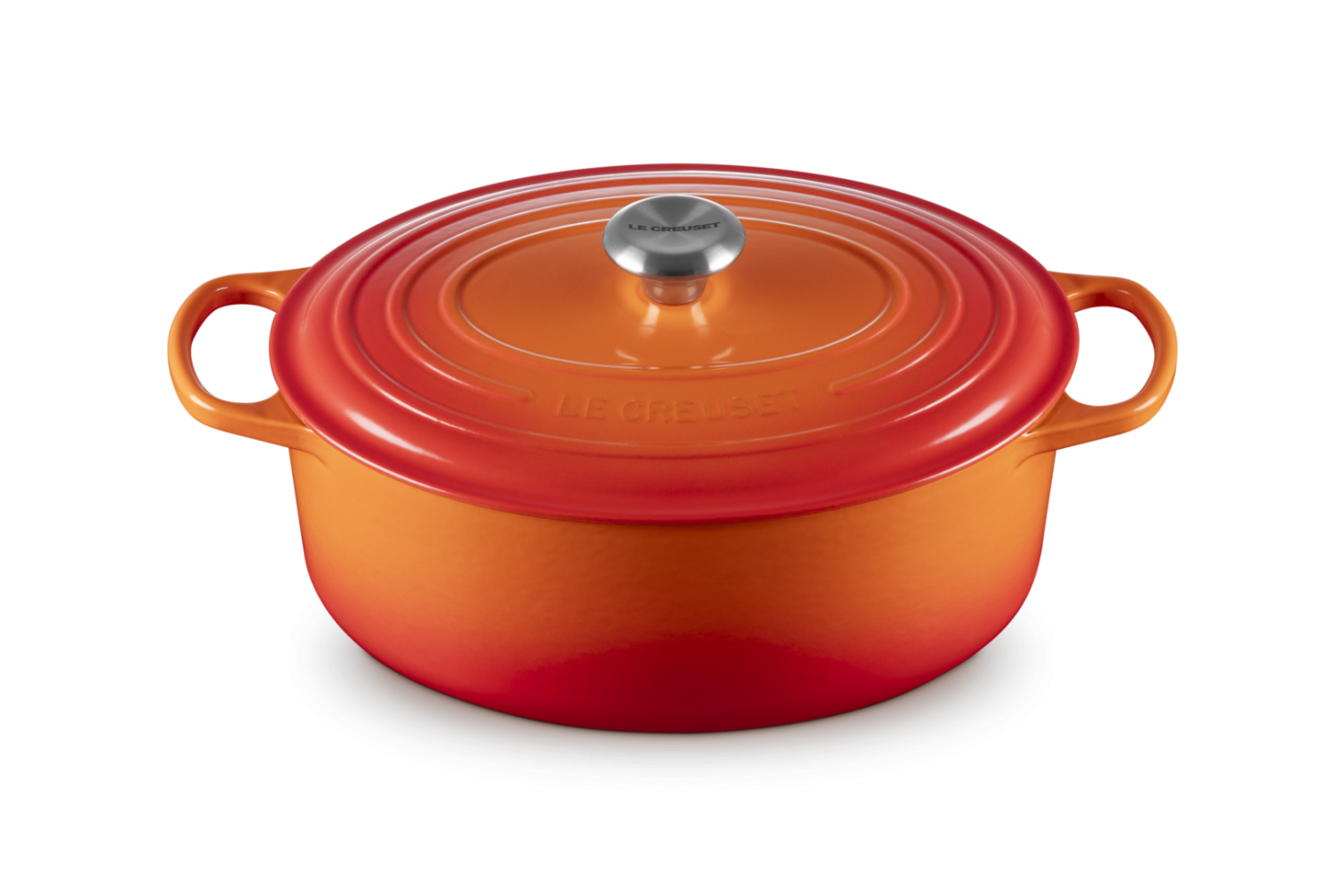 Den ovala gjutjärnsgrytan är lika funktionell som vår klassiska runda. Signature Gjutjärnsgryta oval 31 cm 6,3 L Vulkan.