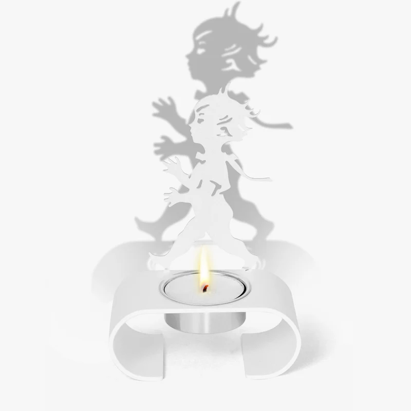 Nätt silhuettljusstake i pulverlackat stål med Solstickanpojken, designad av Einar Nerman 1936. Ger vackra skuggor när ljuset tänds.