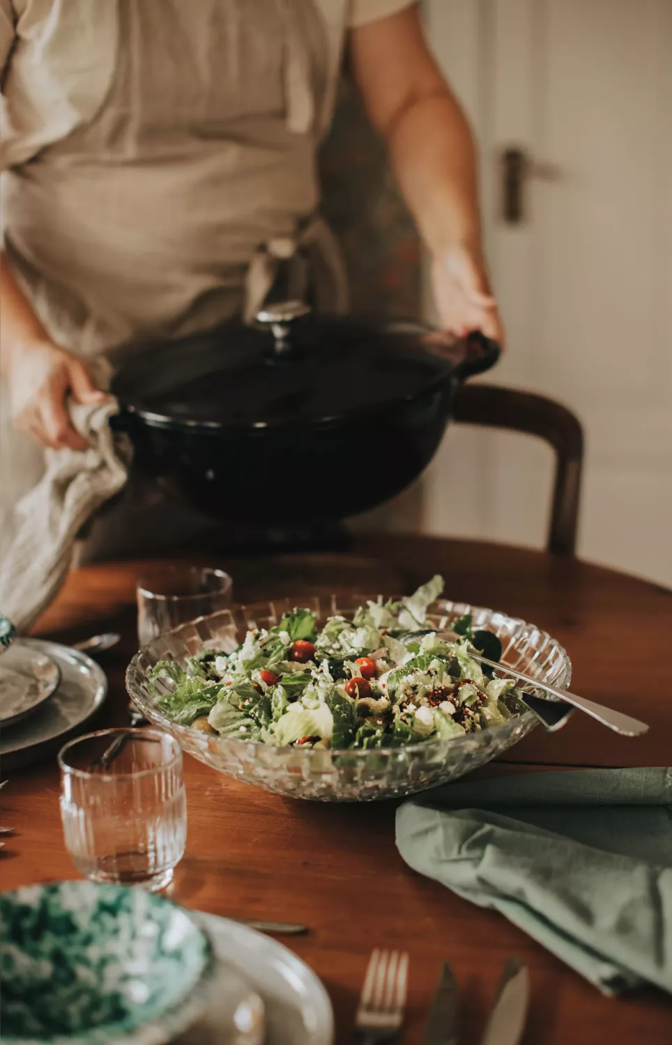Salladsset från Dorre med elegant glasskål och stilrena bestick i rostfritt stål.