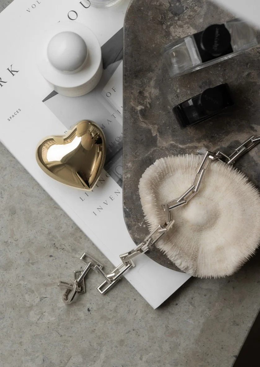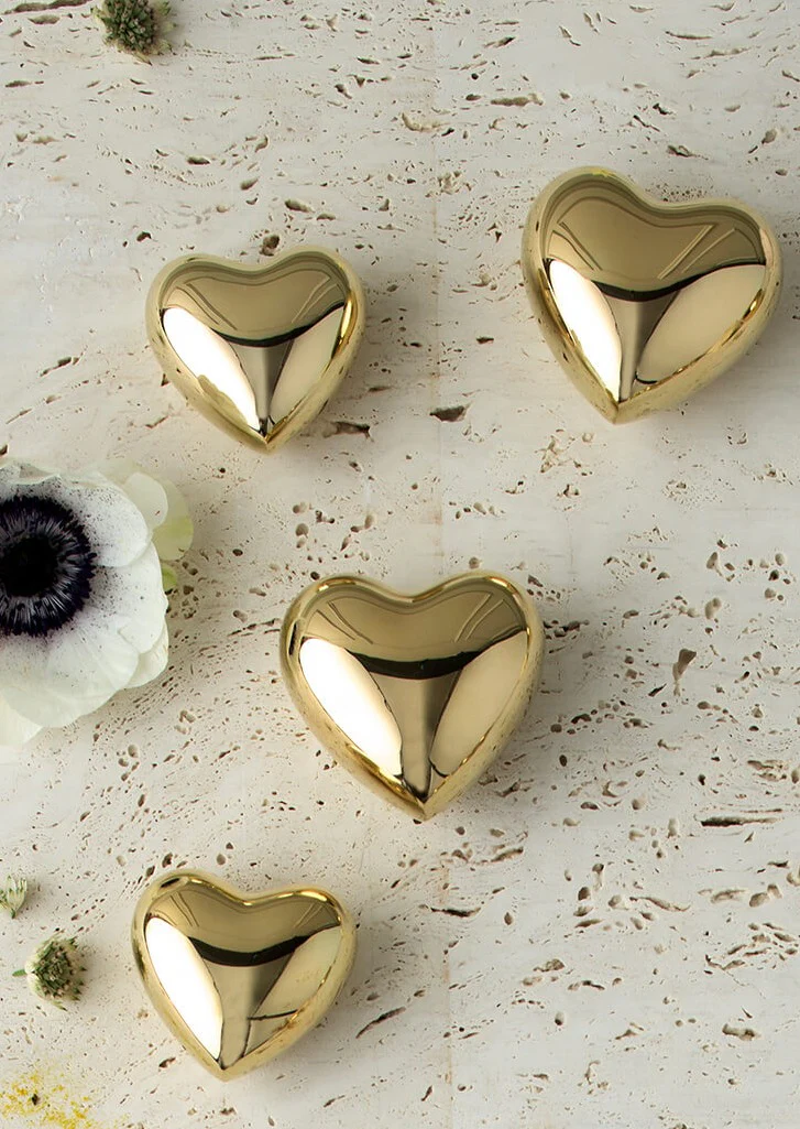 Den kompakta storleken gör hjärtat perfekt att placera på skrivbordet, i bokhyllan eller på nattduksbordet där det blir en diskret men personlig detalj. Den glänsande mässingen reflekterar ljuset och ger ett exklusivt och stilrent uttryck som passar i både moderna och klassiska miljöer.