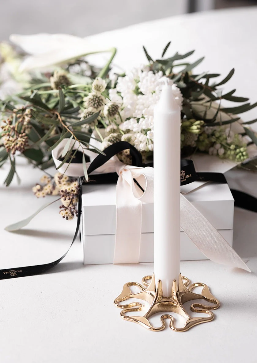 Ljusstake 9,5 cm i massiv mässing med klassisk rosform från Skultuna
