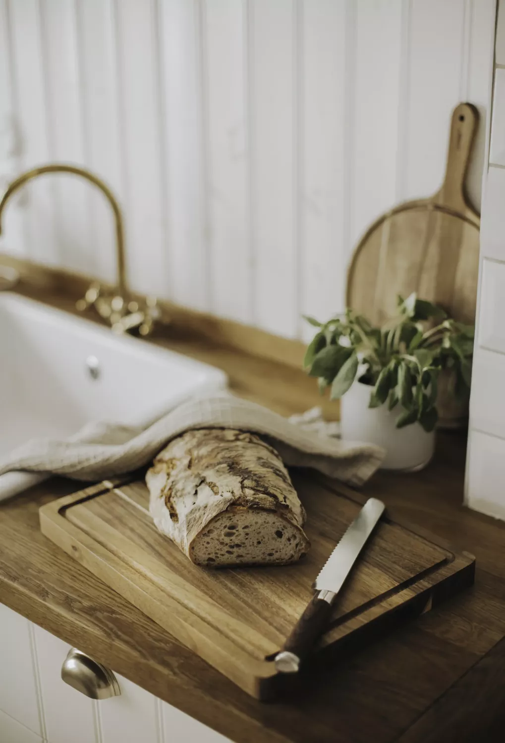 Skärbräda i trä – 40x30 cm, snygg och hållbar med upphöjda kanter.