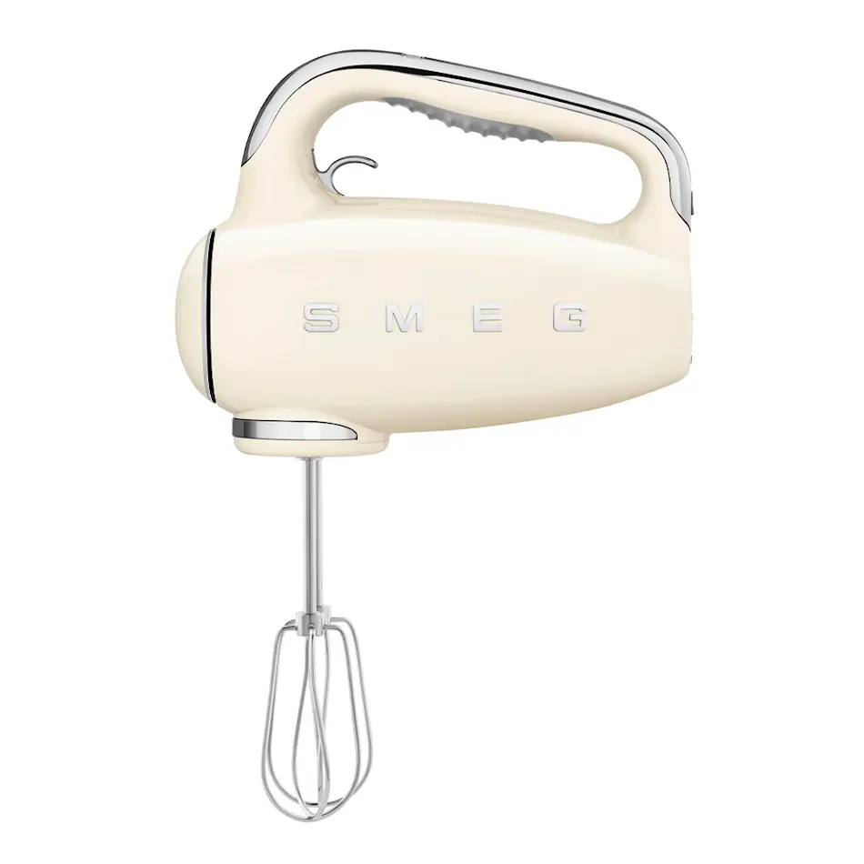 Smeg Elvisp HMF01 är en kraftfull elvisp i ikonisk 50’s Style-design från Italien. Med nio hastigheter och en extra Turbo-funktion kan du enkelt vispa allt från grädde och pannkakssmet till bröd- och pizzadeg. Den upplysta LED-displayen visar både hastighet och tid, och tack vare mjukstartsfunktionen slipper du stänk när du börjar vispa.