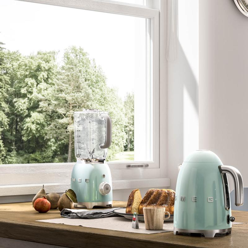 Kompakt vattenkokare i pastellgrönt från Smeg retrostil med snabb uppvärmning