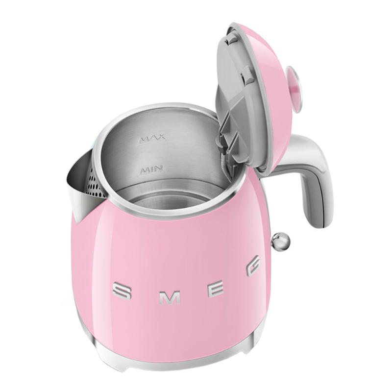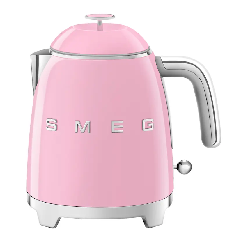 Söt rosa vattenkokare i miniformat som passar perfekt i det lilla köket