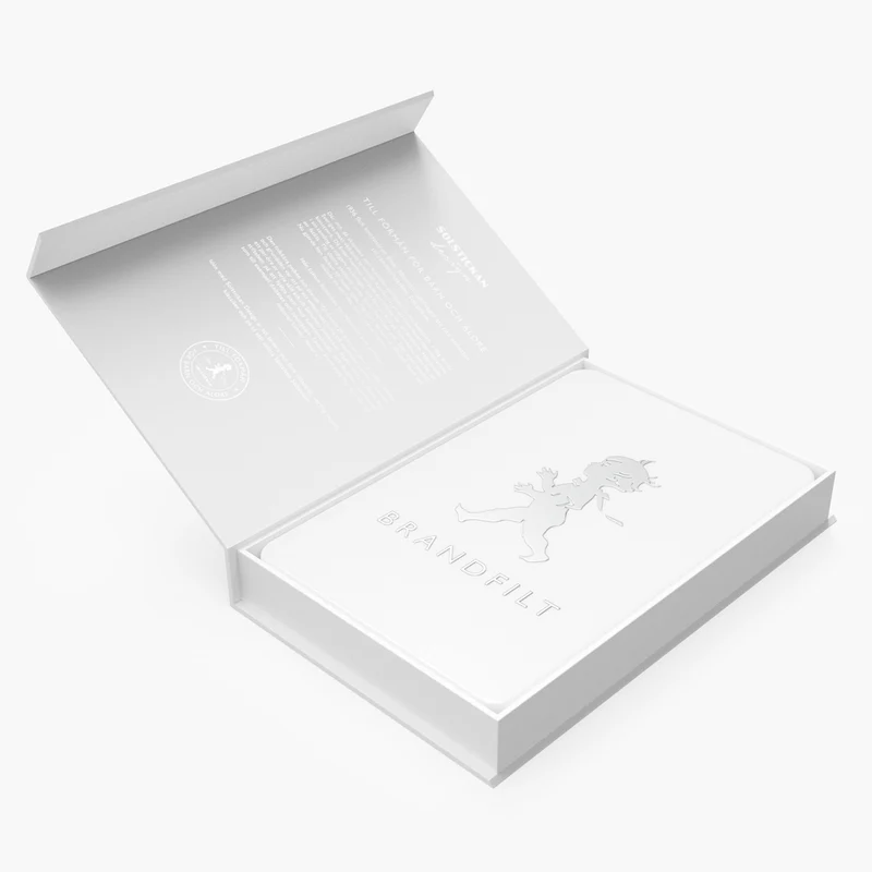 Brandfilten från Solstickan är både snygg och funktionell, förpackad i en stållåda med klassiska Solstickanpojken. Perfekt att ha nära köket