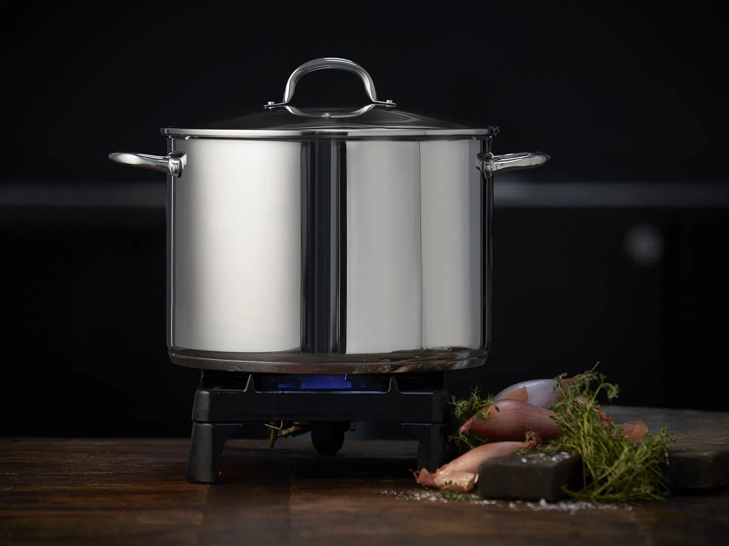Soppgryta 17,2 L i rostfritt stål med induktionsbotten och glaslock