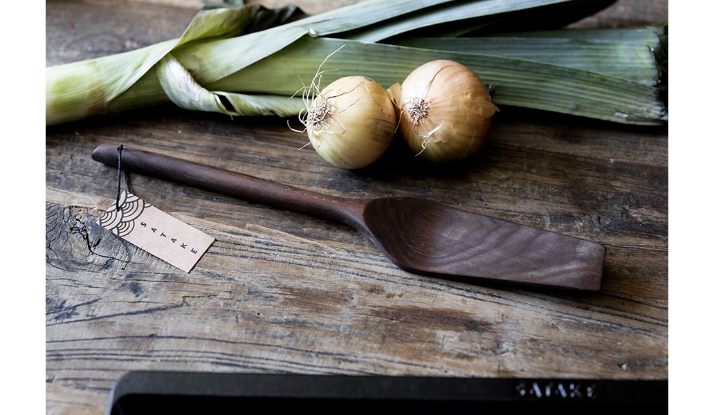 Satake spatel i valnöt 33 cm är ett stilrent och funktionellt köksredskap tillverkat i vackert valnötsträ.