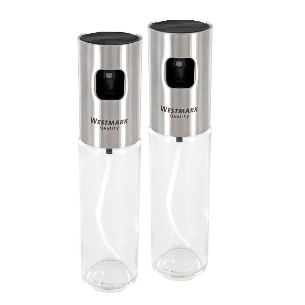 Ett set med två sprayflaskor för jämn fördelning av olja och vinäger vid matlagning. • 2 x 100 ml • Handdisk rekommenderas • 5 års garanti