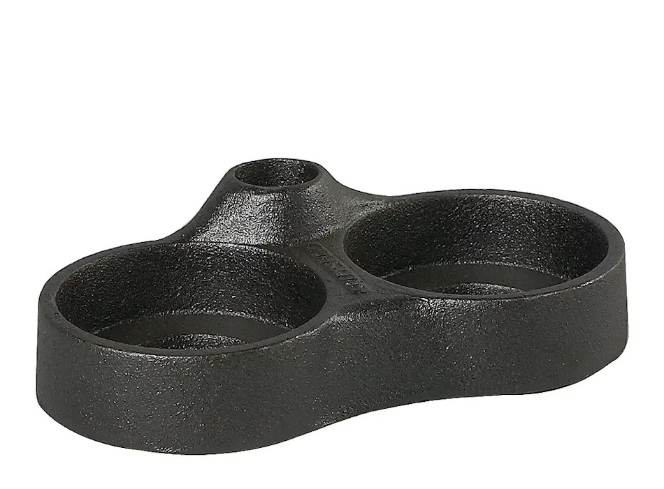 Gjutjärnsställ från Skeppshult för salt- och pepparkvarnar. Håller bänken fri från spill och har även plats för tandpetare. Snygg och praktisk detalj.