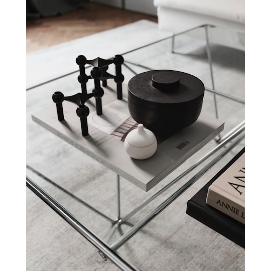 Den mattsvarta finishen ger ett modernt, sofistikerat intryck som passar lika bra i minimalistiska som mer klassiska miljöer. En dekorativ detalj som fungerar både som ljushållare och konstobjekt.