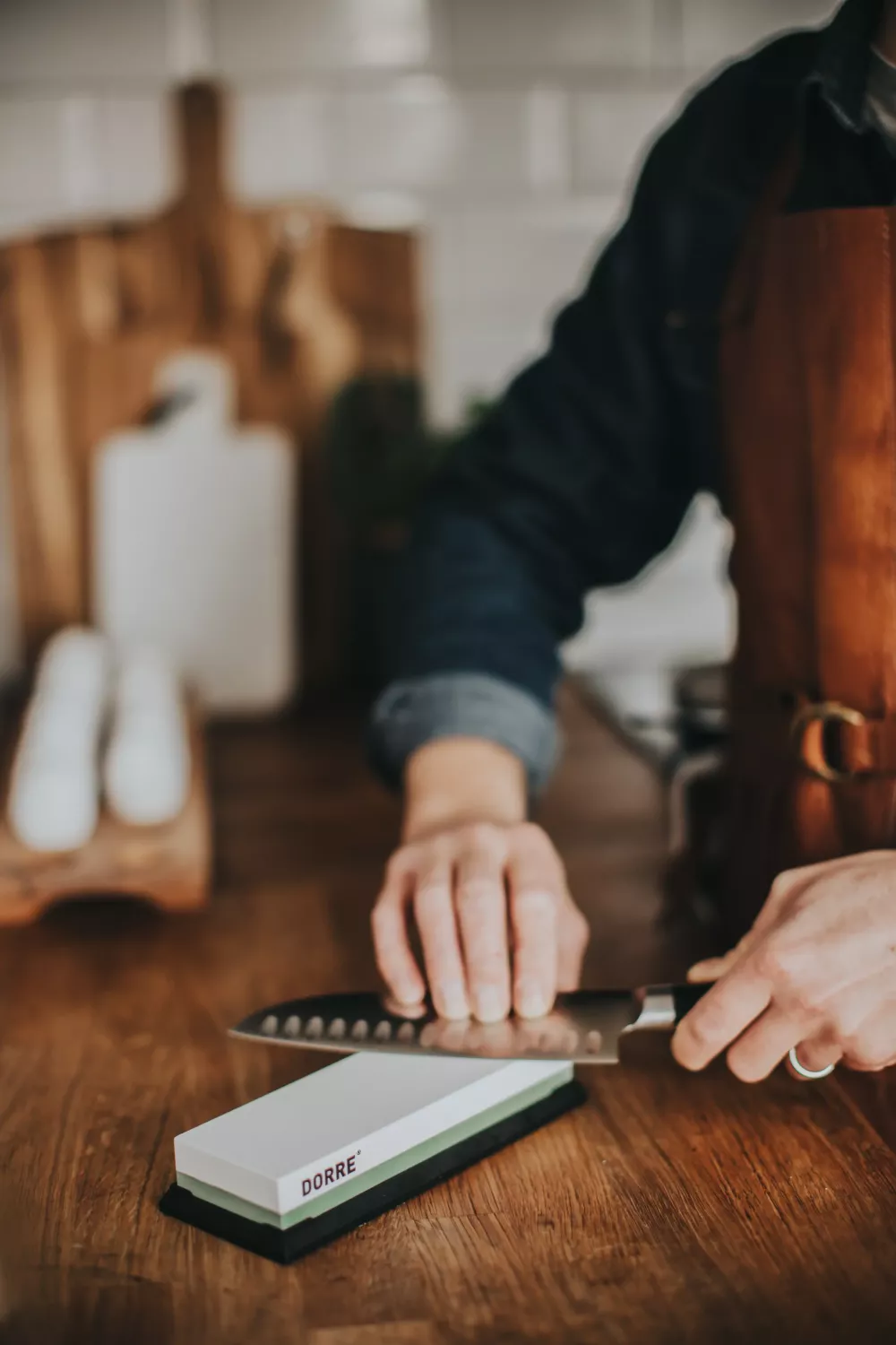 Dubbel slipsten för skärpa och underhåll. Korn 1000 och 3000 för både slipning och polering.