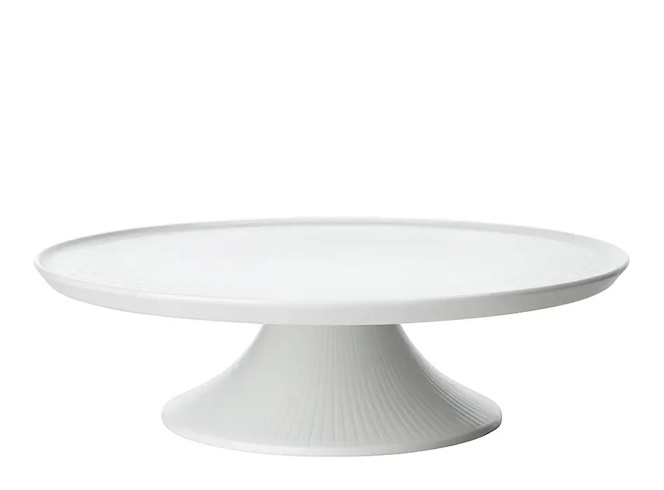 Stort tårtfat i vitt med stilrent “Snö”-mönster – perfekt till fika och festlig dukning.