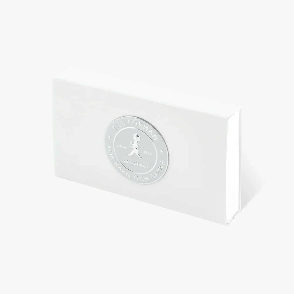 Tändsticksask med klassiska Solstickepojken av Einar Nerman. Svensktillverkad i Tidaholm och innehåller ca 100 ändstickor. Stilren design med emblem.