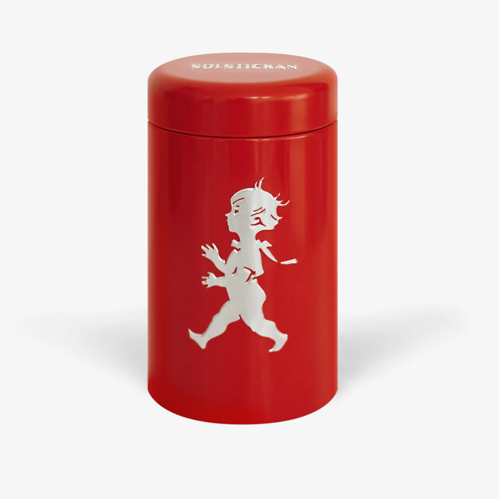Tändsticksrör 10 cm från Solstickan i plåt med klassisk design. Innehåller ca 100 långa tändstickor. Utbytbart plån. Finns i flera färger.