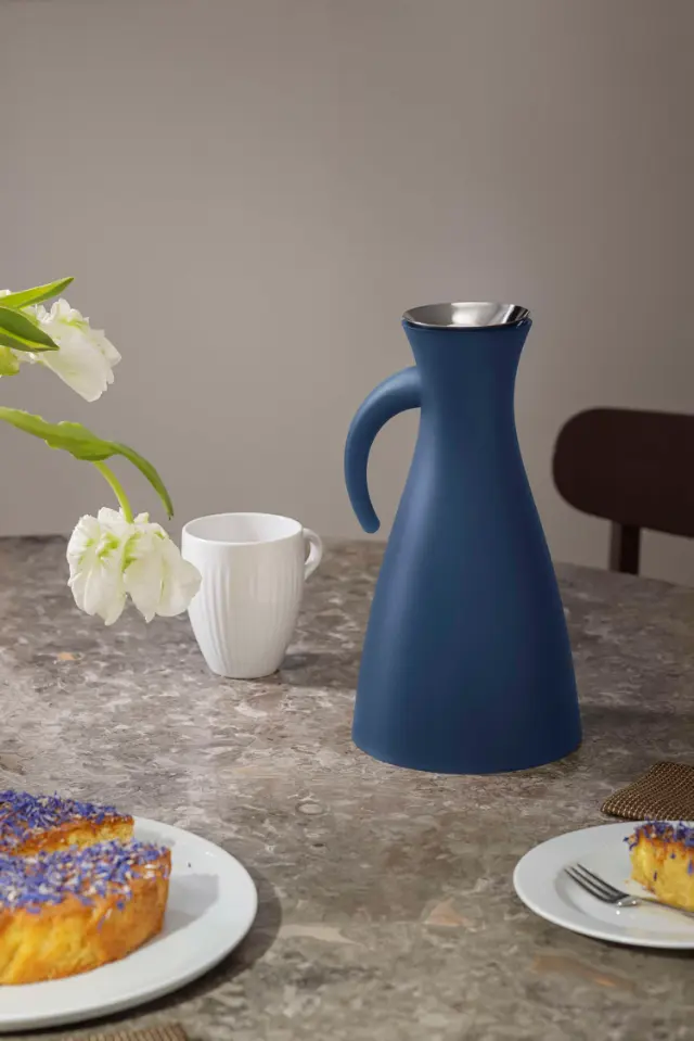Eva Solo termoskanna 1 L i färgen Navy Blue kombinerar funktionell design med en stilren och modern färgton. Den ikoniska termoskannan är skapad för att både vara ett praktiskt serveringsredskap och en elegant detalj på det dukade bordet.