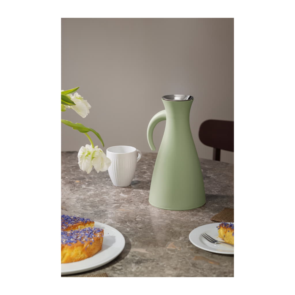 Termoskanna i trendig pistagefärg – 1 liter, håller värmen länge. Droppfri