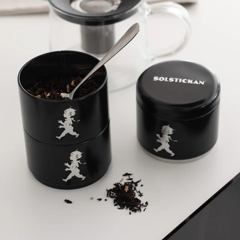 Smart tredelad förvaringsburk med den klassiska Solstickepojken präglad på framsidan. Förvaringsburken passar utmärkt för exempelvis te, müsli eller varför inte hembakta småkakor.