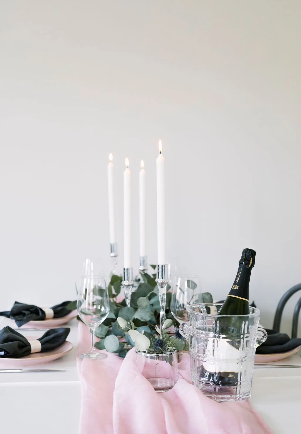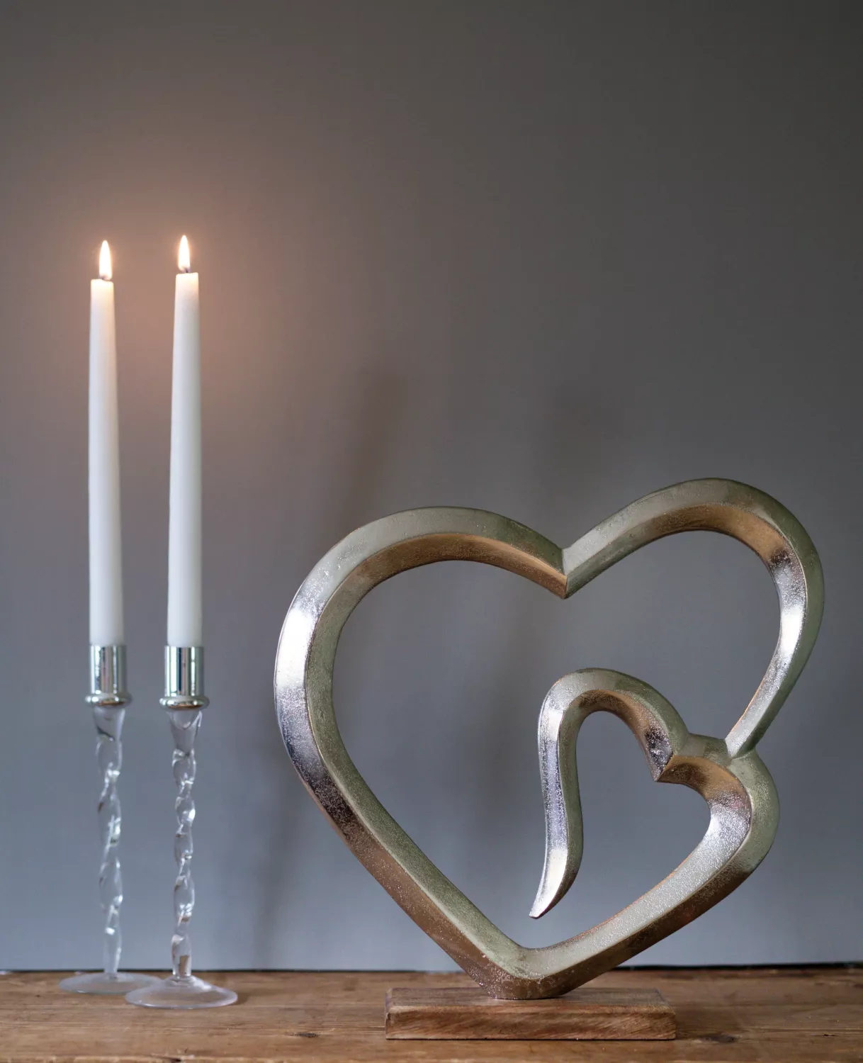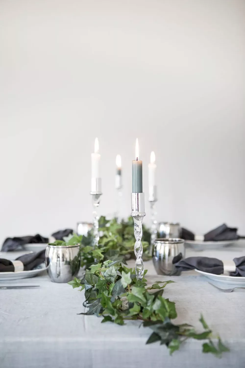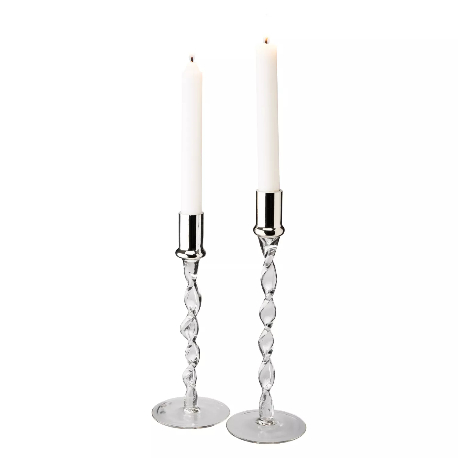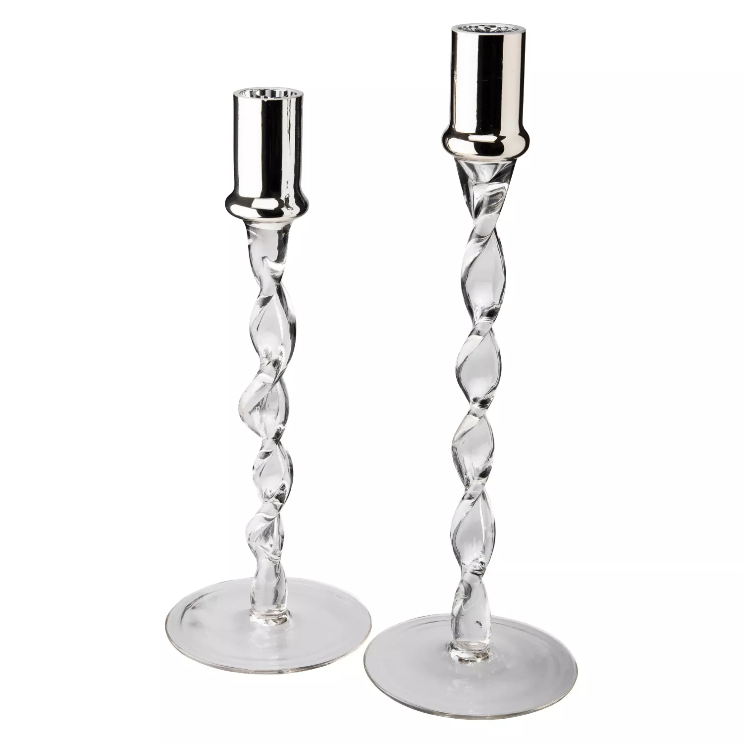 Elegant glasljusstakset med silverfärgad topp. Stilrent par som passar både som gåva och vacker inredningsdetalj i hemmet.