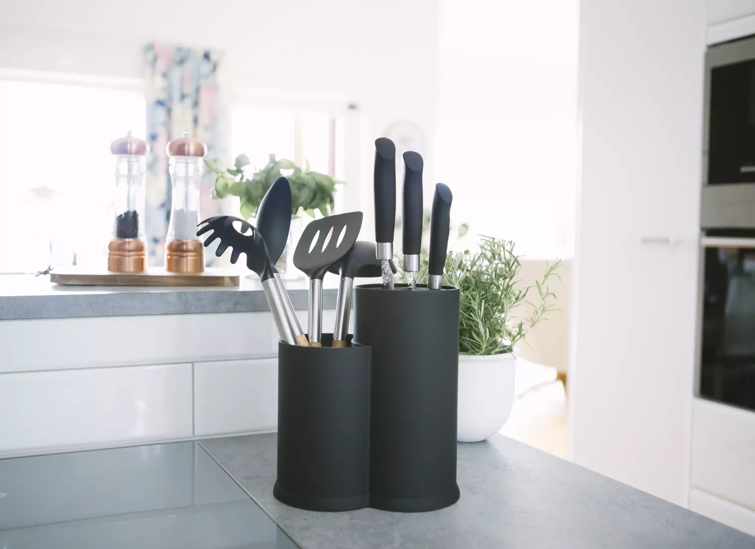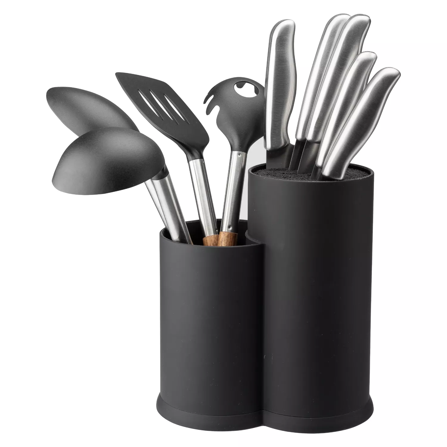 Praktiskt kniv- och redskapsställ med två fack – håller köket organiserat och stilrent.