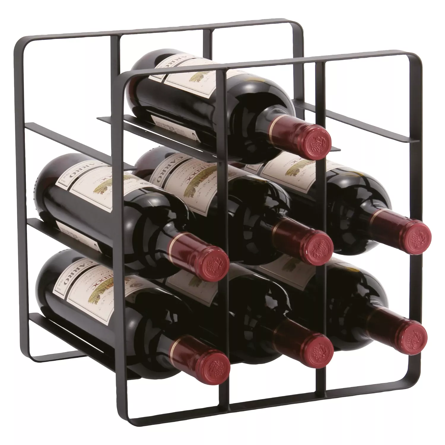 Vinställ i smide i slimmad design som lätt får plats på köksbänken, bordet eller i vinkällaren. Rymmer nio flaskor.