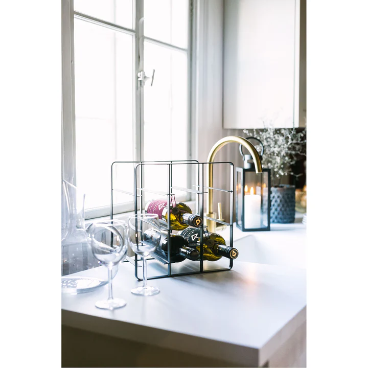 Vinstället har en stabil konstruktion som håller flaskorna säkert på plats och gör det enkelt att både ta fram och lägga tillbaka flaskor. Den kompakta designen gör det även enkelt att placera på en hylla, köksbänk eller i ett vitrinskåp.