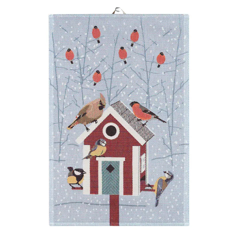 Stilren kökshandduk i ekologisk bomull med vintrigt motiv. Tillverkad i Sverige av Ekelund.