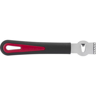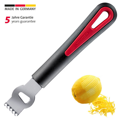 Citrus Zester Gallant från Westmark passar perfekt för att göra remsor av citrusskal för matlagning och garnering. Skrapar effektivt citronskal utan att ta med den bittra märgen. Plasthandtag med ett tillägg av silikon (TPE) som ger ett fast, bekvämt och ergonomiskt grepp. Rostfritt stål i bladet med speciellt etsad skärpa gör att du får ett perfekt resultat varje gång. Upphängningshål i handtaget för smidig förvaring. Citrus Zester Gallant Mått: 16,5 x 2,7 x 2cm Material: Rostfritt stål, Polypropylen & TPE Säker användning: √ Diskmaskinsäker