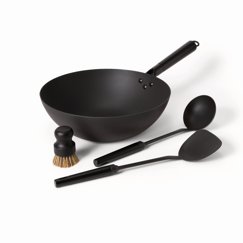 Robust wokkärl i kolstål – 2,5 mm tjockt, levereras med redskap.